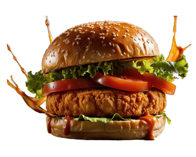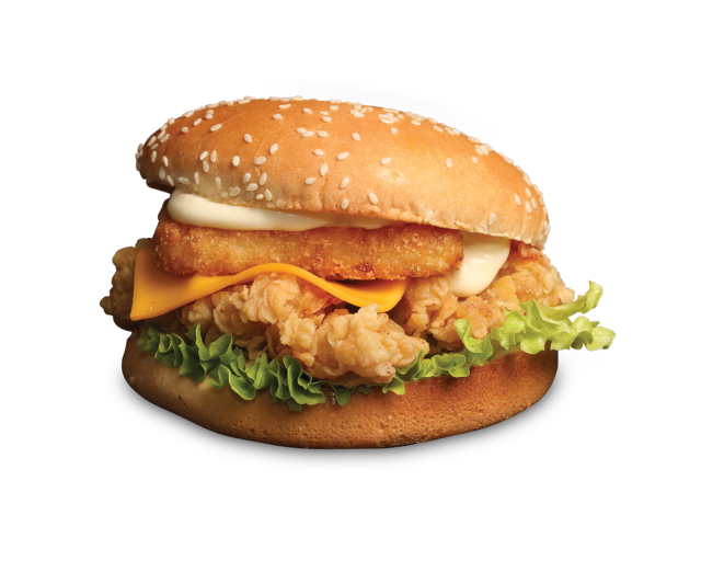 Spicy “sizzler“ chicken fillet (between 90 and 110g), crunchy salad, cheese, mayonnaise sauce. With : 2 sauces of your choice, 1 portion of fries, 1 drink 33 cl.