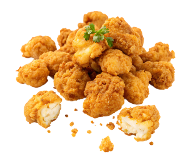 8 Poppin Poppers (pieces of unspiced chicken breast), 2 sauces of your choice, 1 portion of fries, 1 Caprisun drink.