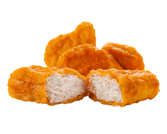 6 crispy chicken nuggets with 2 sauces, fries, and a 33cl drink.