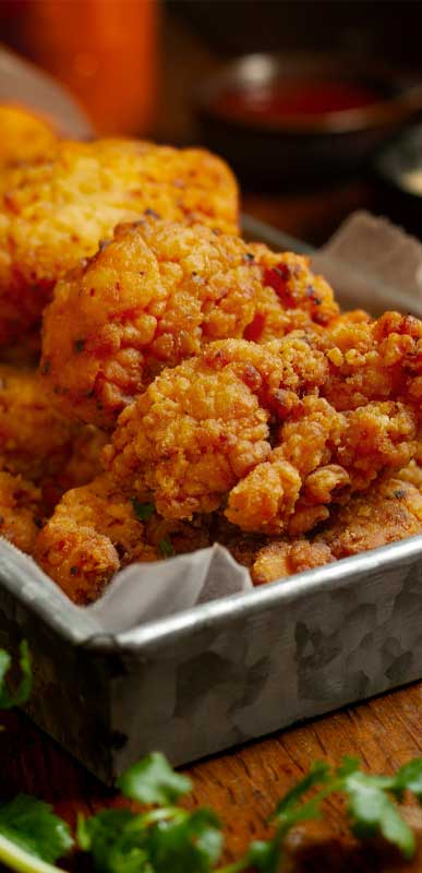 5 tender Chicken Spot Tikka pieces (spicy & tasty) with 2 sauces, fries, and a 33cl drink.